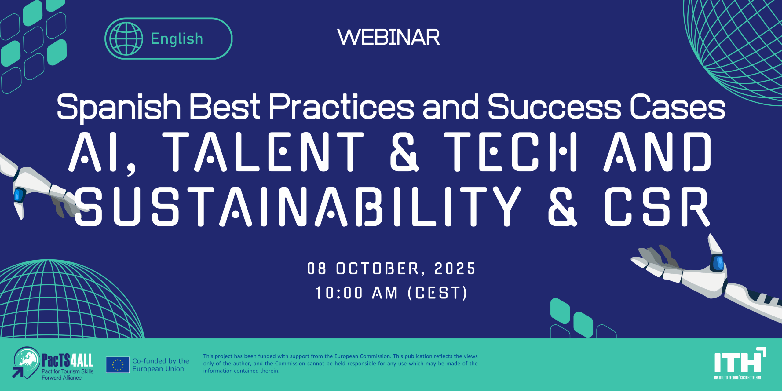 ITH and the European project @PacTS4ALL invite you to the free webinar “Best Practices and Success Stories in AI, Talent & Tech and Sustainability & CSR.” This online session will bring together professionals and experts who will share practical examples, lessons learned and results, with the aim of strengthening the competitiveness and sustainability of the tourism […]